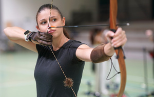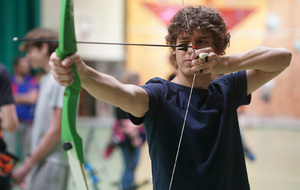 meme si le chamboule tir n'a pas été sollicité, Olivier nous a fait découvrir le tir à l'apache sur arc classique. Petits et plus grands ont pu tester leur agilité et leur force à ce tour de main.