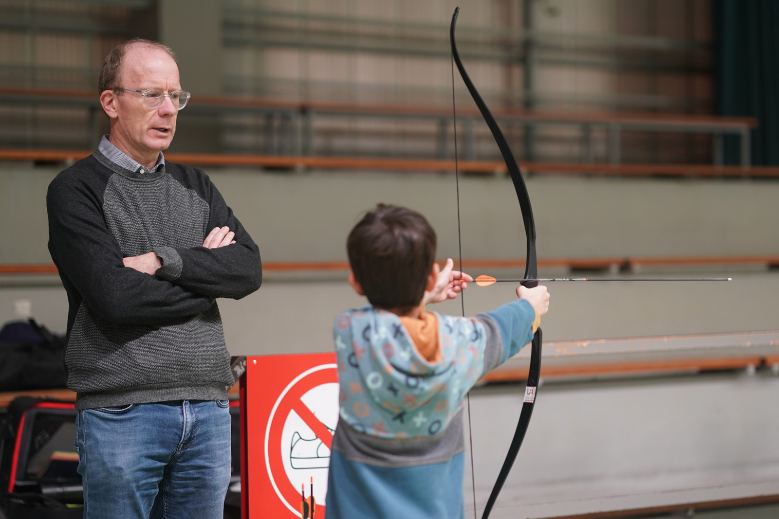 meme si le chamboule tir n'a pas été sollicité, Olivier nous a fait découvrir le tir à l'apache sur arc classique. Petits et plus grands ont pu tester leur agilité et leur force à ce tour de main.